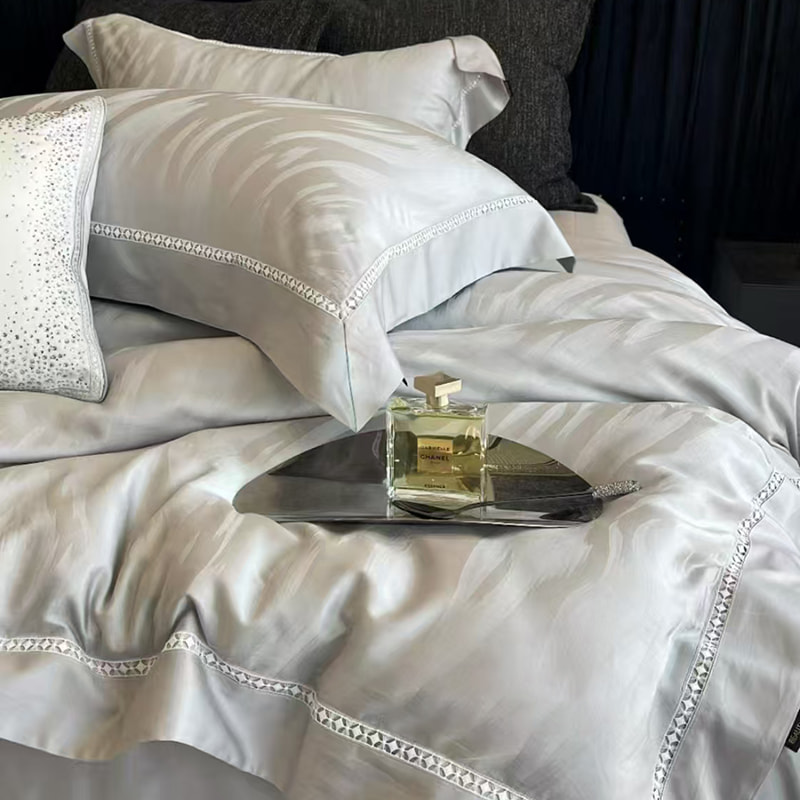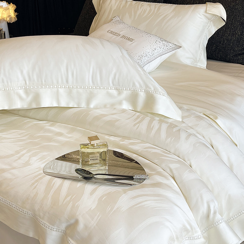 1. 고급스러운 터치와 환경 친화적 인 재료의 완벽한 조합 : Tencel Jacquard 침대 시트 세트 세트는 고 섬유질 필라멘트와 절묘한 Jacquard Craftsmansip과 결합하여 Tencel Jacquard 재료를 사용하여 직물에 가볍고 섬세한 질감을줍니다. Tencel Fiber는 천연 목재 펄프에서 파생되며 생산 공정은 녹색이며 환경 친화적입니다. 그것은 생분해 성뿐만 아니라 색상의 색도가 뛰어나 오래 지속되고 밝은 색상을 보장합니다. Jacquard Process는 직물의 3 차원 텍스처를 향상시킬뿐만 아니라 시력과 터치의 이중 업그레이드를 제공하여 침구가 고급스러운 터치로 한 단계 더 나아갑니다. Jacquard 공정의 3 차원 텍스처와 결합 된 섬유의 부드럽고 부드러운 특성은이 침구를 실크처럼 매끄럽게 만들고 우수한 수분 흡수 성능으로 건조하고 편안하게 유지할 수 있으며 민감한 피부와 알레르기를 가진 사람들에게 매우 적합합니다. 또한 Tencel 재료의 천연 항균 및 방지 특성은 사용자에게 건강하고 환경 친화적 인 선택, 특히 영아 및 민감한 사람들에게 적합한 선택을 제공합니다.